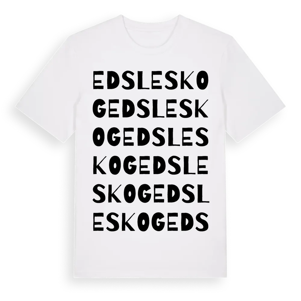 Edsleskog ordlek t-shirt är inspirerad av byn Edsleskog i Västra Götalands län, Sverige. Tröjan är designad för dig som har en speciell koppling till platsen – oavsett om du bor här, har rötterna här eller bara älskar Edsleskog.