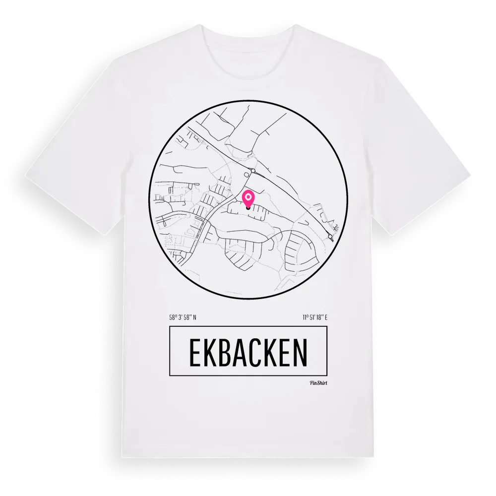 Ekbacken t-shirt är inspirerad av stadsdelen Ekbacken i Västra Götalands län, Sverige. Tröjan är designad för dig som har en speciell koppling till platsen – oavsett om du bor här, har rötterna här eller bara älskar Ekbacken.