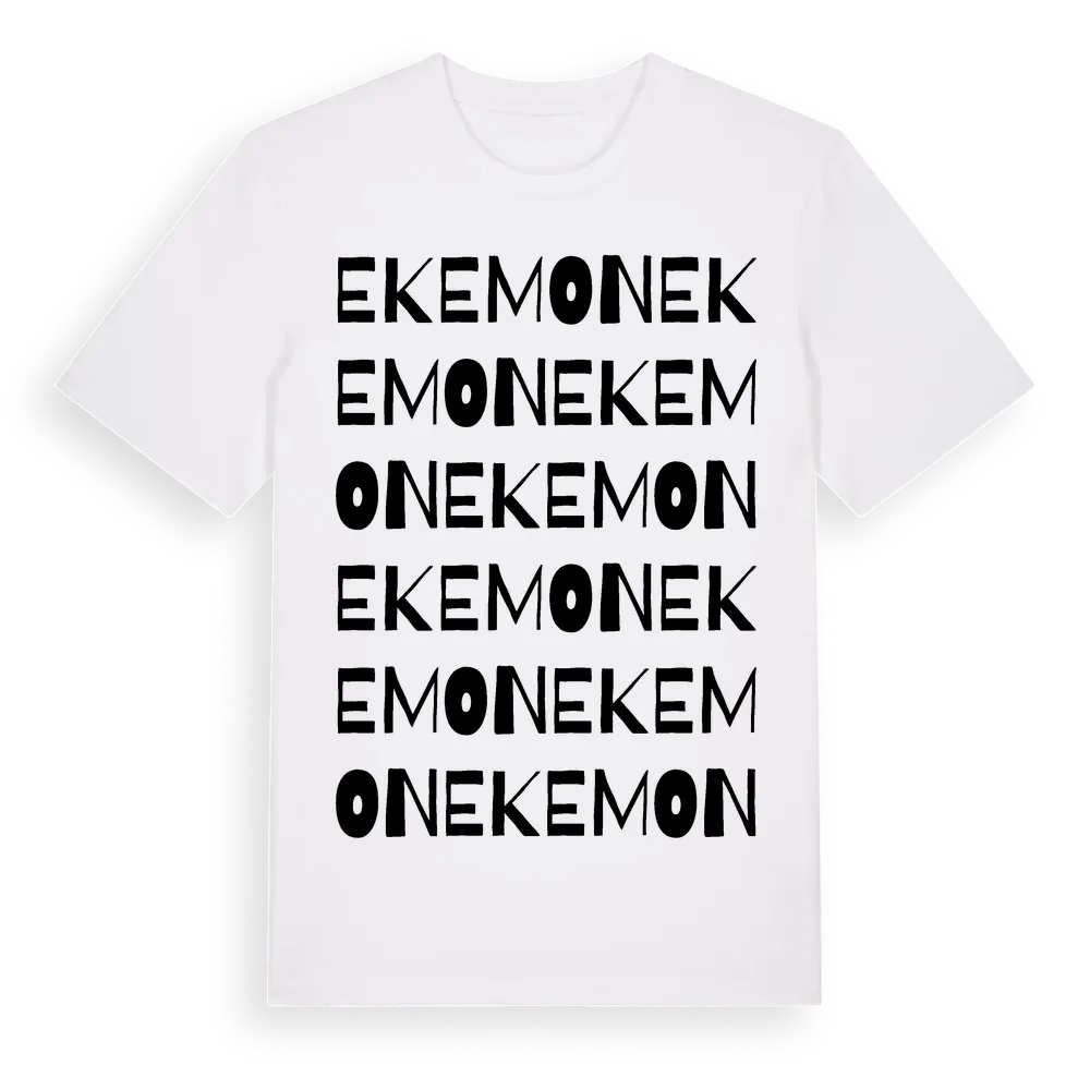 Ekemon ordlek t-shirt är inspirerad av byn Ekemon i Västra Götalands län, Sverige. Tröjan är designad för dig som har en speciell koppling till platsen – oavsett om du bor här, har rötterna här eller bara älskar Ekemon.