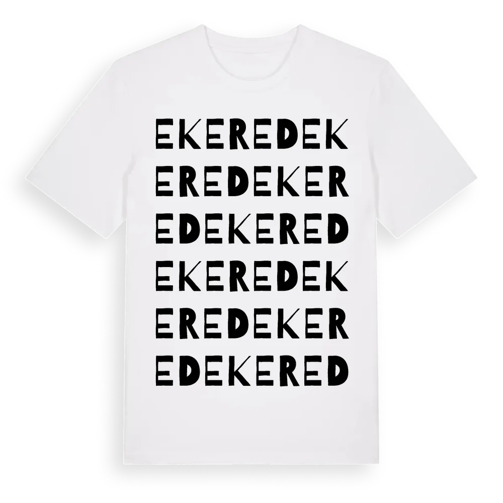 Ekered ordlek t-shirt är inspirerad av stadsdelen Ekered i Västra Götalands län, Sverige. Tröjan är designad för dig som har en speciell koppling till platsen – oavsett om du bor här, har rötterna här eller bara älskar Ekered.