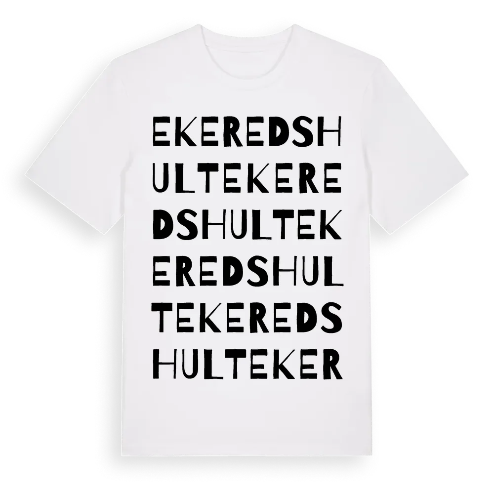 Ekeredshult ordlek t-shirt är inspirerad av Ekeredshult i Västra Götalands län, Sverige. Tröjan är designad för dig som har en speciell koppling till platsen – oavsett om du bor här, har rötterna här eller bara älskar Ekeredshult.