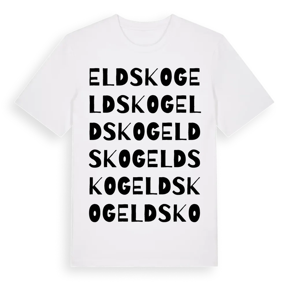 Eldskog ordlek t-shirt är inspirerad av Eldskog i Västra Götalands län, Sverige. Tröjan är designad för dig som har en speciell koppling till platsen – oavsett om du bor här, har rötterna här eller bara älskar Eldskog.