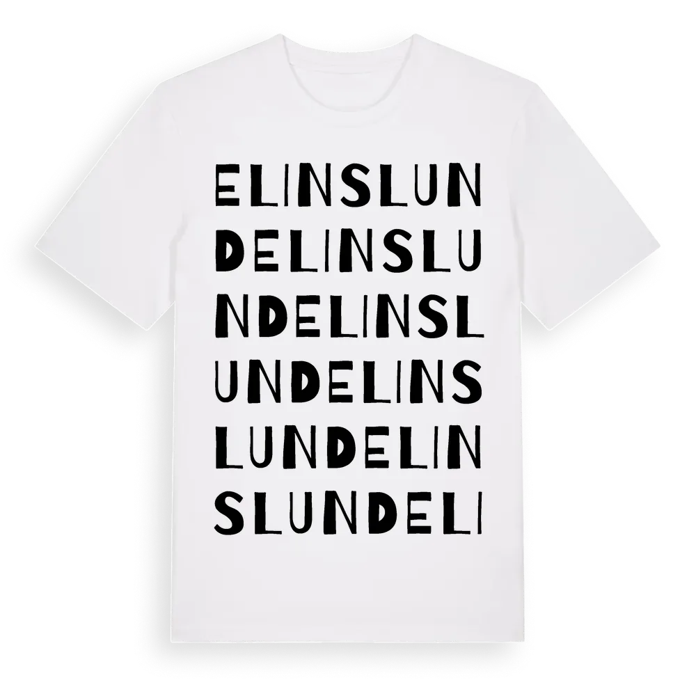 Elinslund ordlek t-shirt är inspirerad av Elinslund i Västra Götalands län, Sverige. Tröjan är designad för dig som har en speciell koppling till platsen – oavsett om du bor här, har rötterna här eller bara älskar Elinslund.