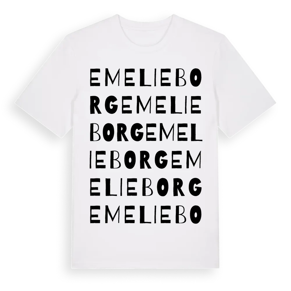 Emelieborg ordlek t-shirt är inspirerad av Emelieborg i Västra Götalands län, Sverige. Tröjan är designad för dig som har en speciell koppling till platsen – oavsett om du bor här, har rötterna här eller bara älskar Emelieborg.