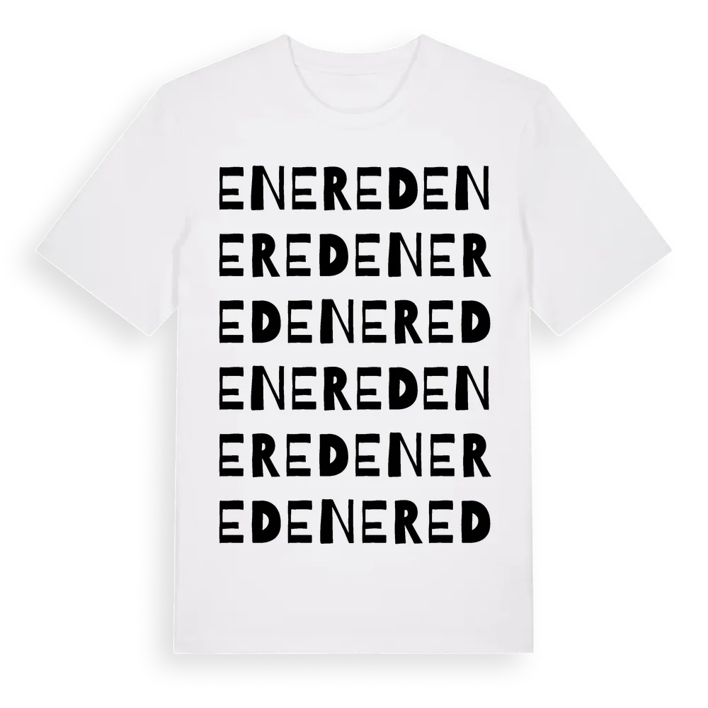 Enered ordlek t-shirt är inspirerad av byn Enered i Västra Götalands län, Sverige. Tröjan är designad för dig som har en speciell koppling till platsen – oavsett om du bor här, har rötterna här eller bara älskar Enered.