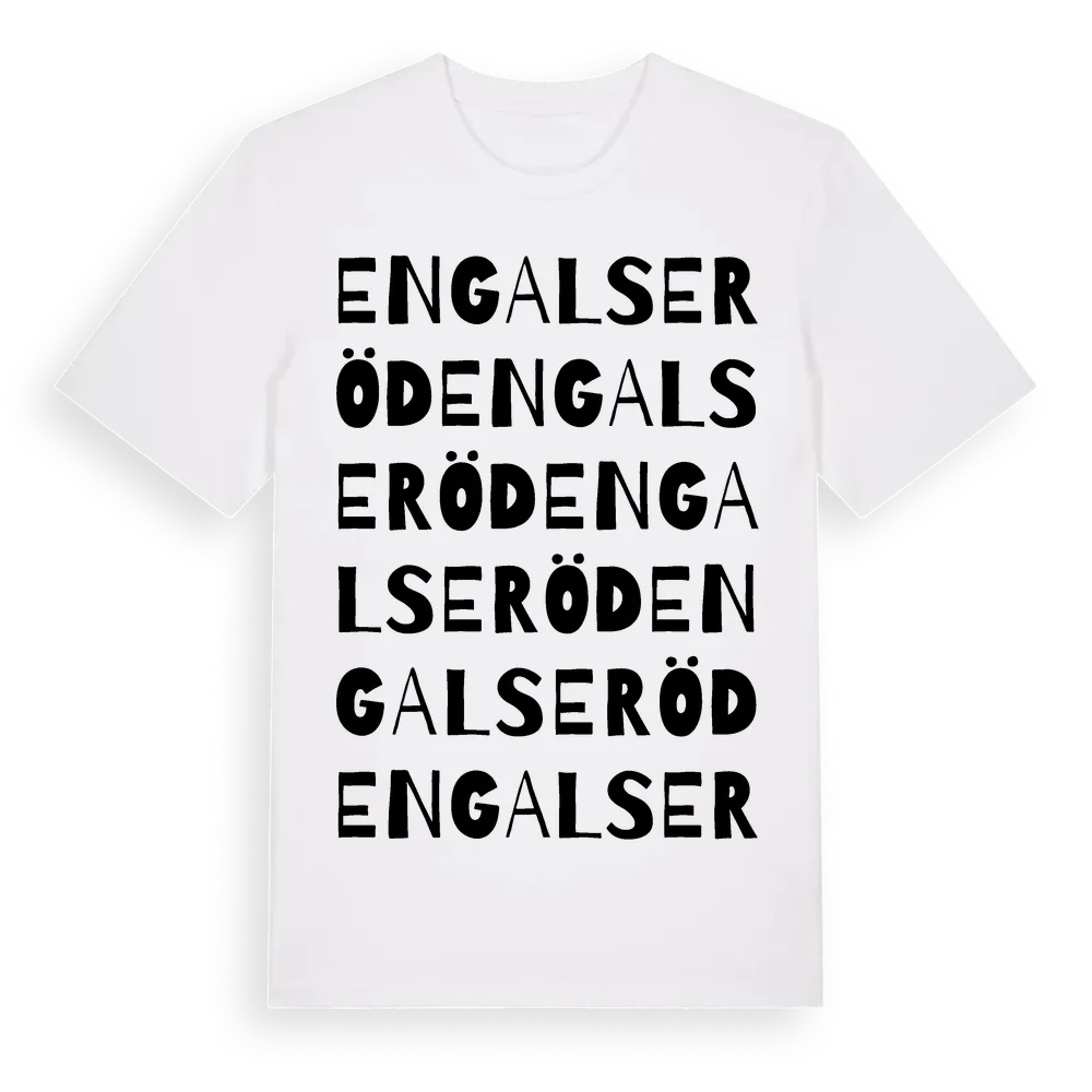 Engalseröd ordlek t-shirt är inspirerad av Engalseröd i Västra Götalands län, Sverige. Tröjan är designad för dig som har en speciell koppling till platsen – oavsett om du bor här, har rötterna här eller bara älskar Engalseröd.