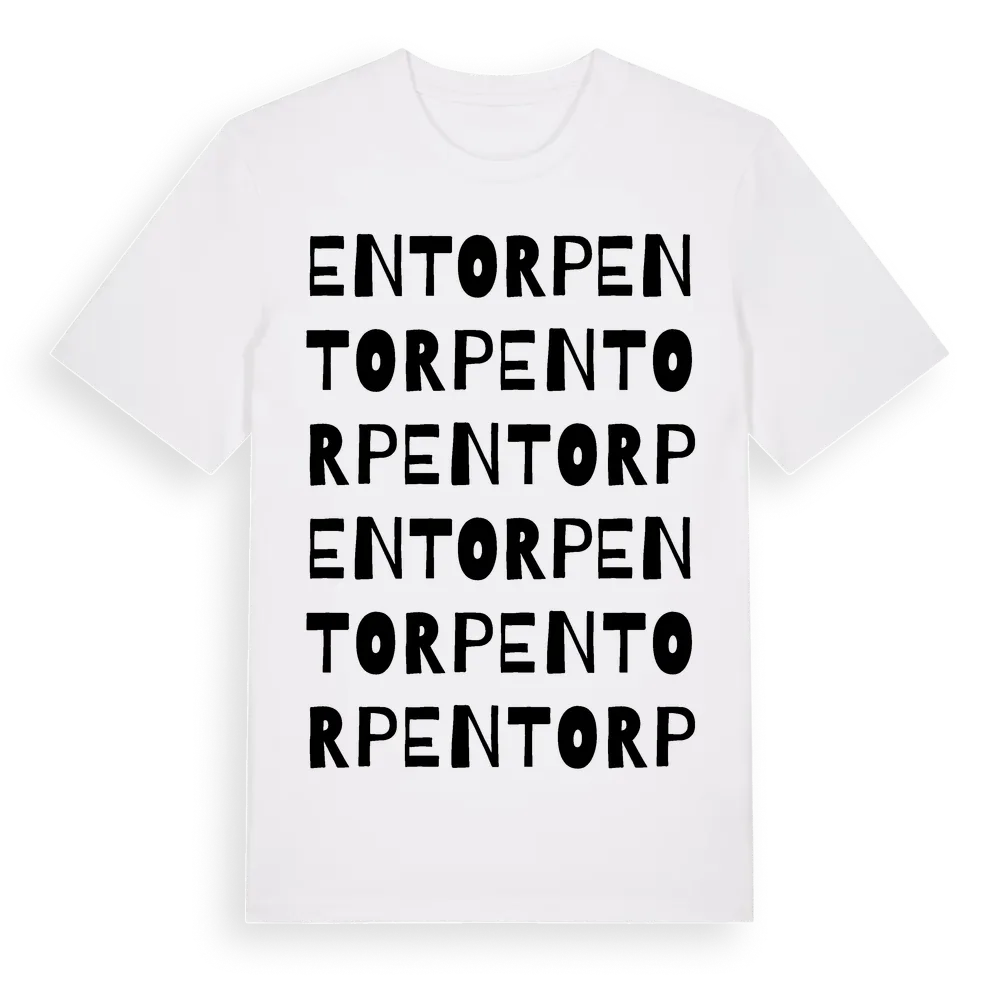 Entorp ordlek t-shirt är inspirerad av Entorp i Västra Götalands län, Sverige. Tröjan är designad för dig som har en speciell koppling till platsen – oavsett om du bor här, har rötterna här eller bara älskar Entorp.