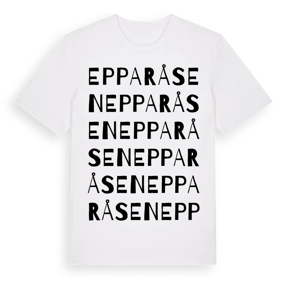 Epparåsen ordlek t-shirt är inspirerad av Epparåsen i Västra Götalands län, Sverige. Tröjan är designad för dig som har en speciell koppling till platsen – oavsett om du bor här, har rötterna här eller bara älskar Epparåsen.