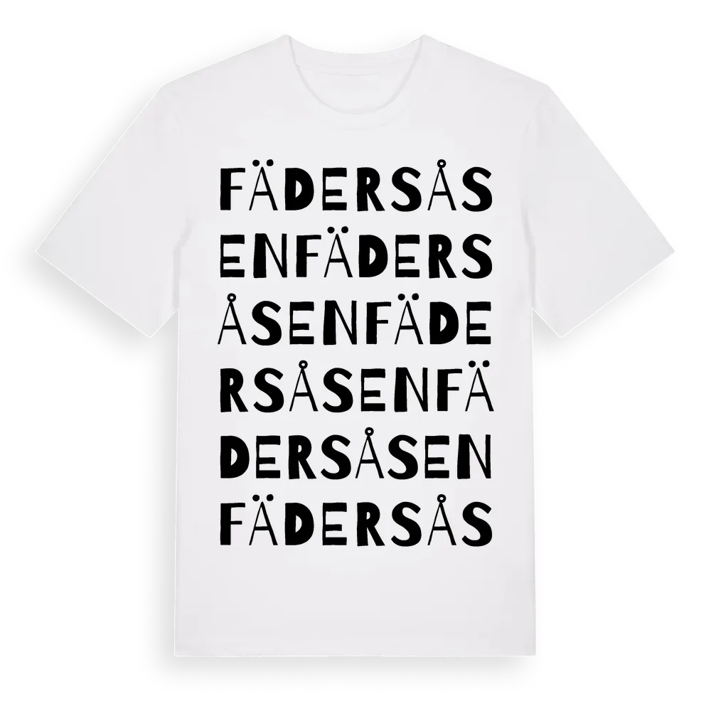 Fädersåsen ordlek t-shirt är inspirerad av Fädersåsen i Västra Götalands län, Sverige. Tröjan är designad för dig som har en speciell koppling till platsen – oavsett om du bor här, har rötterna här eller bara älskar Fädersåsen.