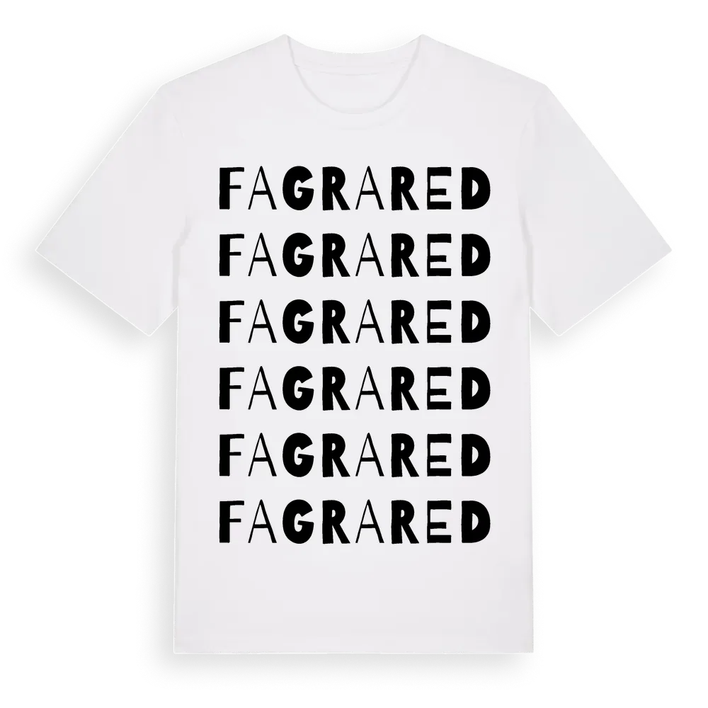 Fagrared ordlek t-shirt är inspirerad av Fagrared i Västra Götalands län, Sverige. Tröjan är designad för dig som har en speciell koppling till platsen – oavsett om du bor här, har rötterna här eller bara älskar Fagrared.