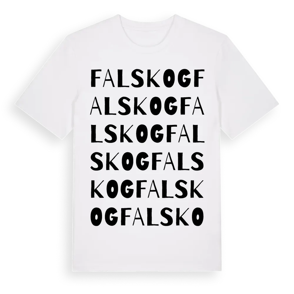 Falskog ordlek t-shirt är inspirerad av byn Falskog i Västra Götalands län, Sverige. Tröjan är designad för dig som har en speciell koppling till platsen – oavsett om du bor här, har rötterna här eller bara älskar Falskog.