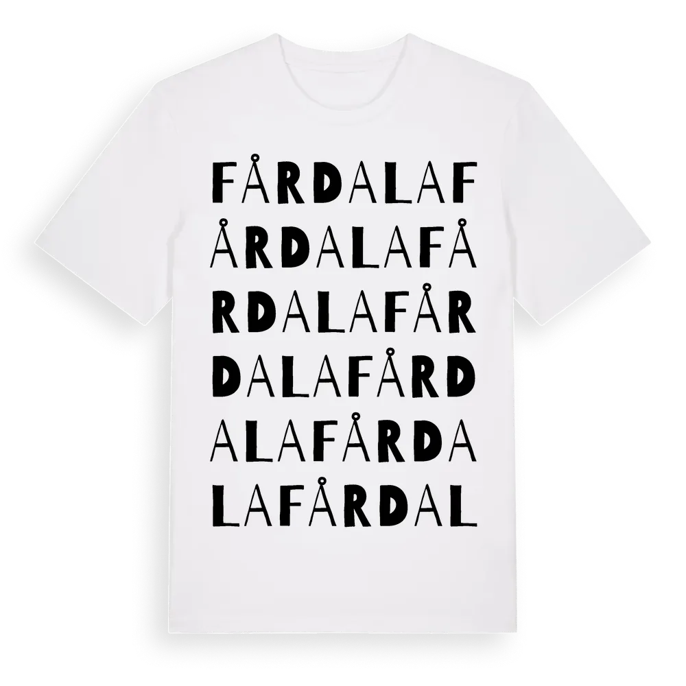 Fårdala ordlek t-shirt är inspirerad av Fårdala i Västra Götalands län, Sverige. Tröjan är designad för dig som har en speciell koppling till platsen – oavsett om du bor här, har rötterna här eller bara älskar Fårdala.