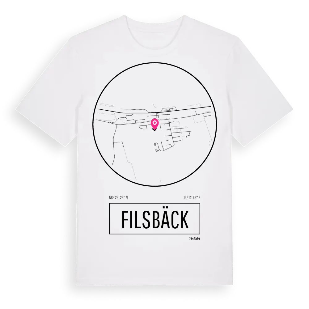 Filsbäck t-shirt är inspirerad av byn Filsbäck i Västra Götalands län, Sverige. Tröjan är designad för dig som har en speciell koppling till platsen – oavsett om du bor här, har rötterna här eller bara älskar Filsbäck.