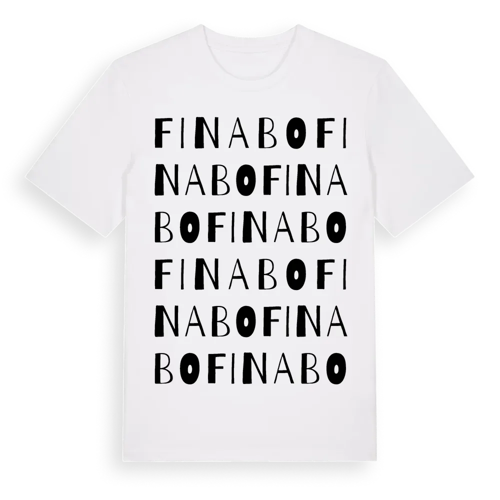Finabo ordlek t-shirt är inspirerad av byn Finabo i Västra Götalands län, Sverige. Tröjan är designad för dig som har en speciell koppling till platsen – oavsett om du bor här, har rötterna här eller bara älskar Finabo.