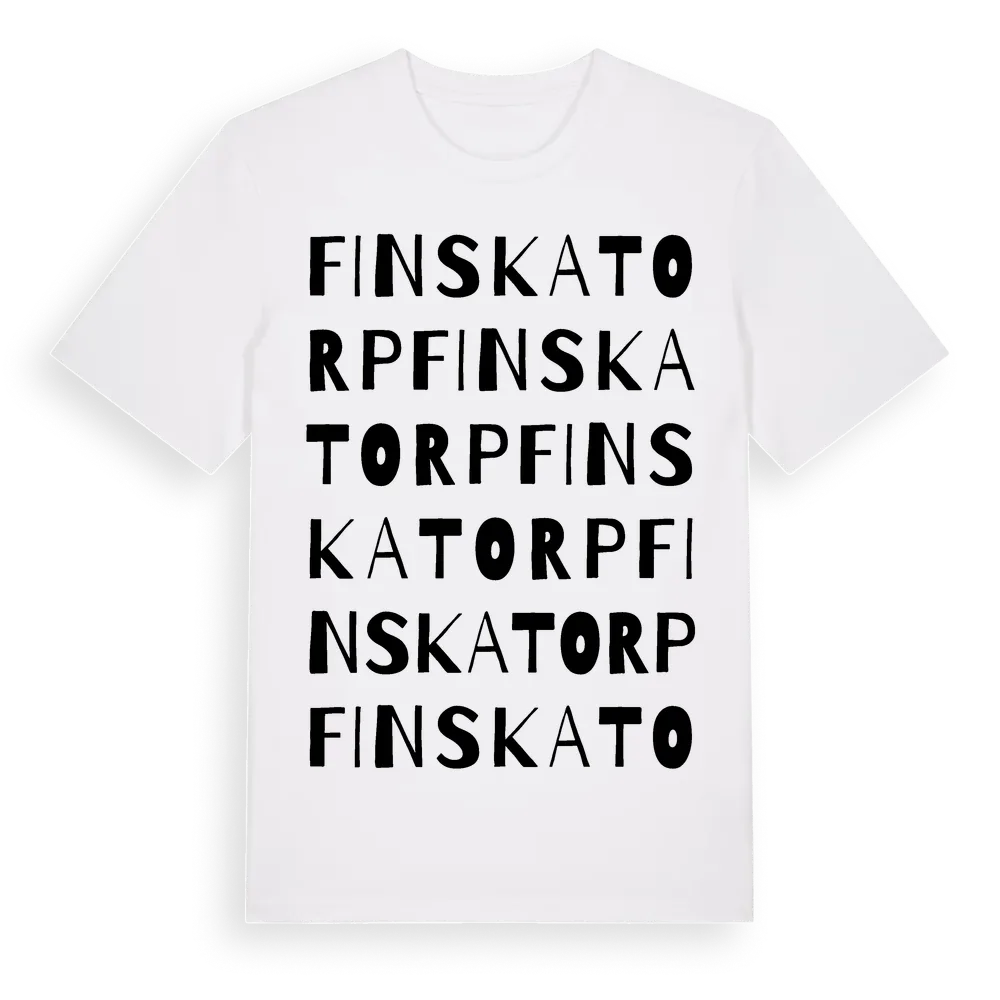 Finskatorp ordlek t-shirt är inspirerad av Finskatorp i Västra Götalands län, Sverige. Tröjan är designad för dig som har en speciell koppling till platsen – oavsett om du bor här, har rötterna här eller bara älskar Finskatorp.