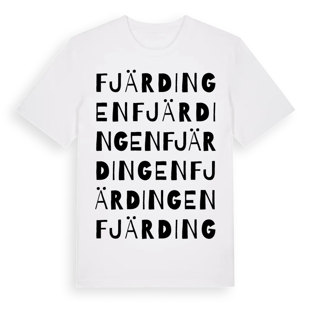 Fjärdingen ordlek t-shirt är inspirerad av Fjärdingen i Västra Götalands län, Sverige. Tröjan är designad för dig som har en speciell koppling till platsen – oavsett om du bor här, har rötterna här eller bara älskar Fjärdingen.
