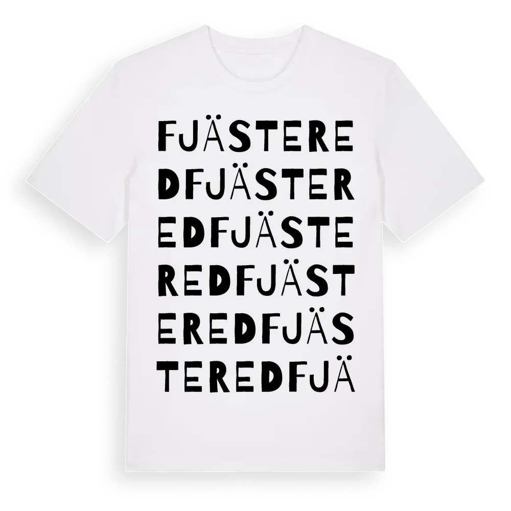 Fjästered ordlek t-shirt är inspirerad av Fjästered i Västra Götalands län, Sverige. Tröjan är designad för dig som har en speciell koppling till platsen – oavsett om du bor här, har rötterna här eller bara älskar Fjästered.