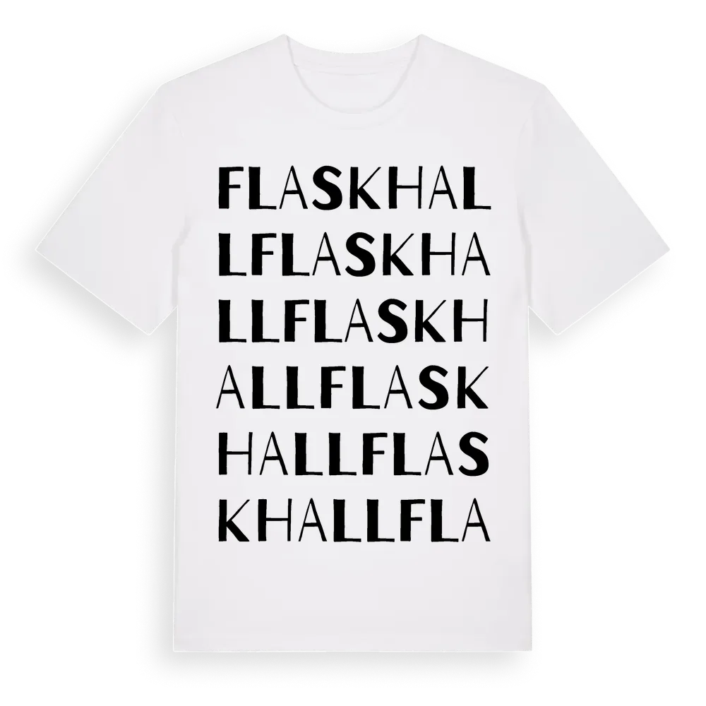 Flaskhall ordlek t-shirt är inspirerad av Flaskhall i Västra Götalands län, Sverige. Tröjan är designad för dig som har en speciell koppling till platsen – oavsett om du bor här, har rötterna här eller bara älskar Flaskhall.