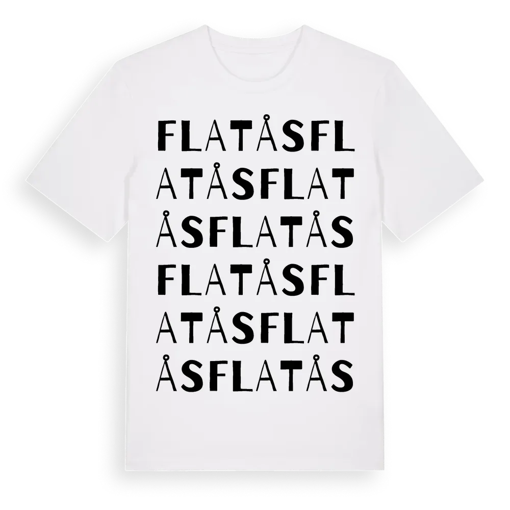 En ordlek byggd på Flatåss namn. Subtilt och klurig – ett motiv som bara de som verkligen känner platsen fullt ut förstår. Premium bomull, unisex – från Flatås i Västra Götalands län.
