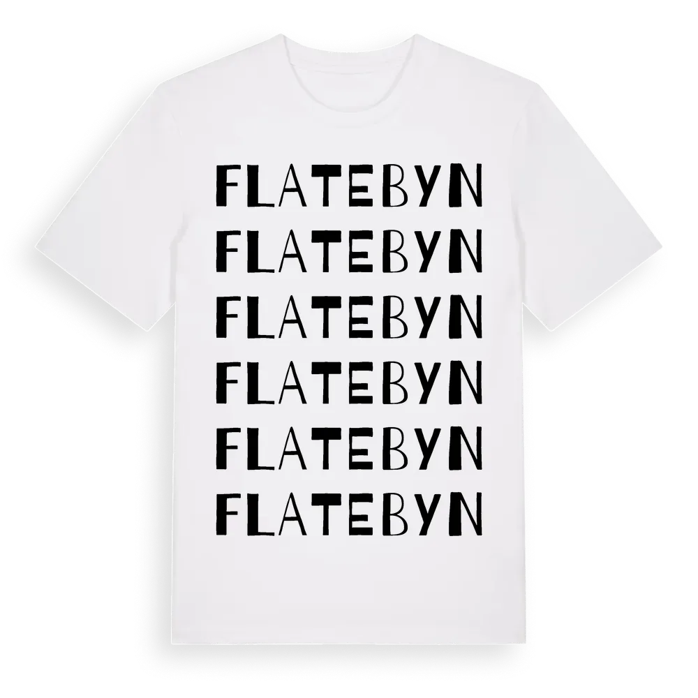 En ordlek byggd på Flatebyns namn. Subtilt och klurig – ett motiv som bara de som verkligen känner platsen fullt ut förstår. Premium bomull, unisex – från byn Flatebyn i Västra Götalands län.