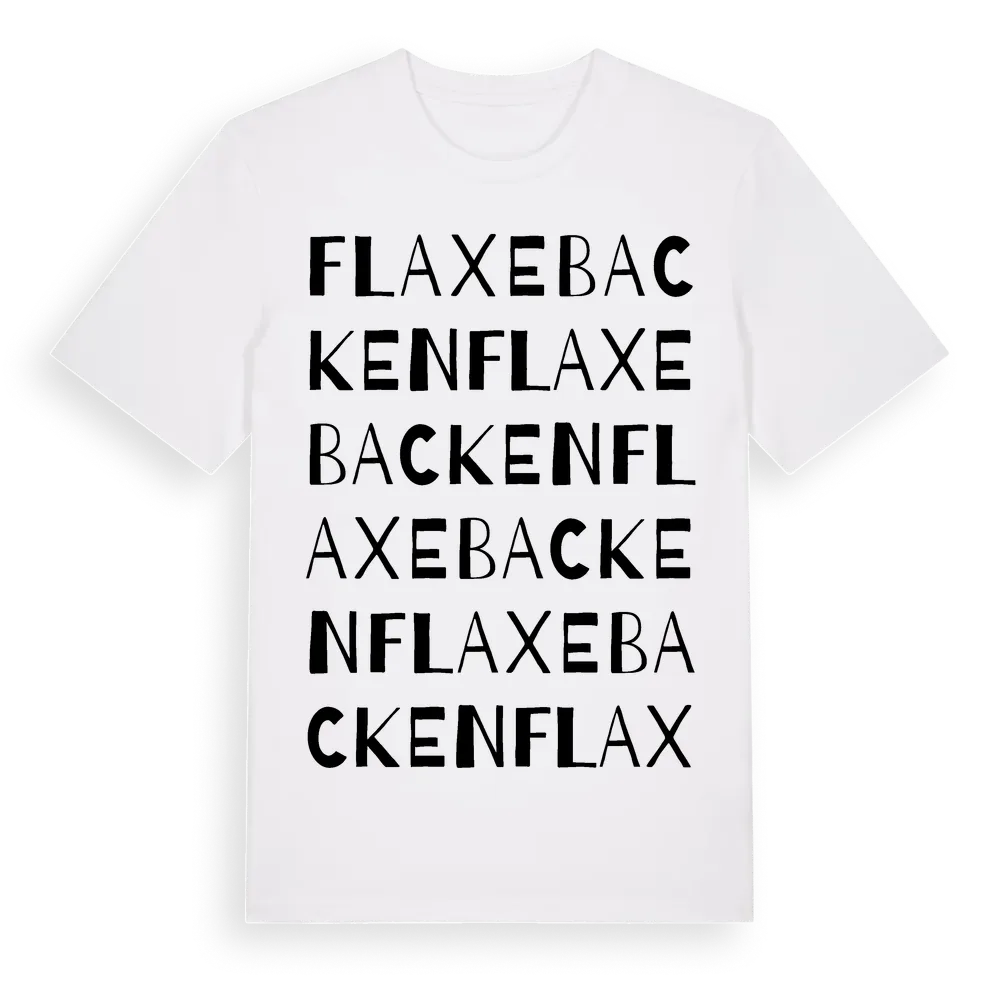 Flaxebacken ordlek t-shirt är inspirerad av Flaxebacken i Västra Götalands län, Sverige. Tröjan är designad för dig som har en speciell koppling till platsen – oavsett om du bor här, har rötterna här eller bara älskar Flaxebacken.