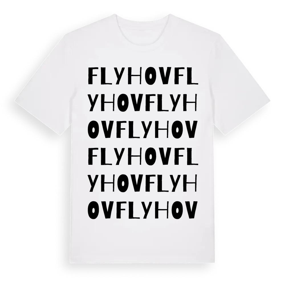 En ordlek byggd på Flyhovs namn. Subtilt och klurig – ett motiv som bara de som verkligen känner platsen fullt ut förstår. Premium bomull, unisex – från Flyhov i Västra Götalands län.