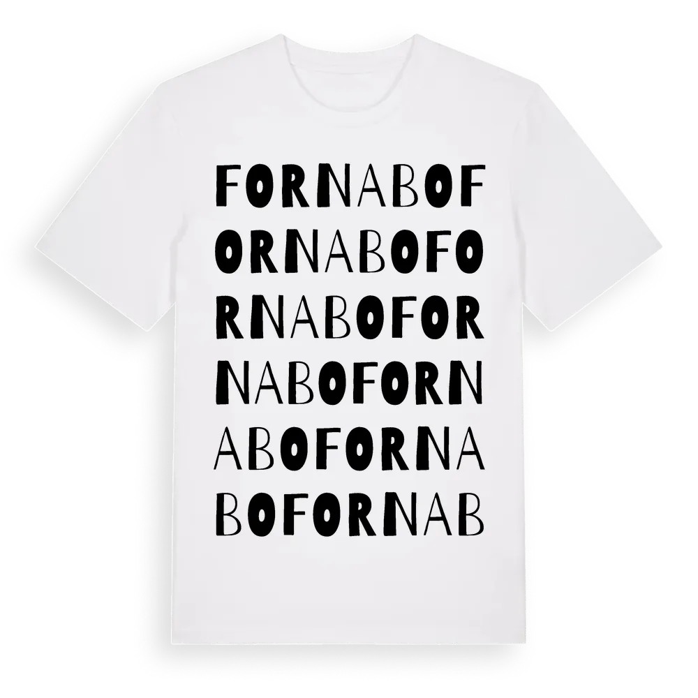Fornabo ordlek t-shirt är inspirerad av Fornabo i Västra Götalands län, Sverige. Tröjan är designad för dig som har en speciell koppling till platsen – oavsett om du bor här, har rötterna här eller bara älskar Fornabo.