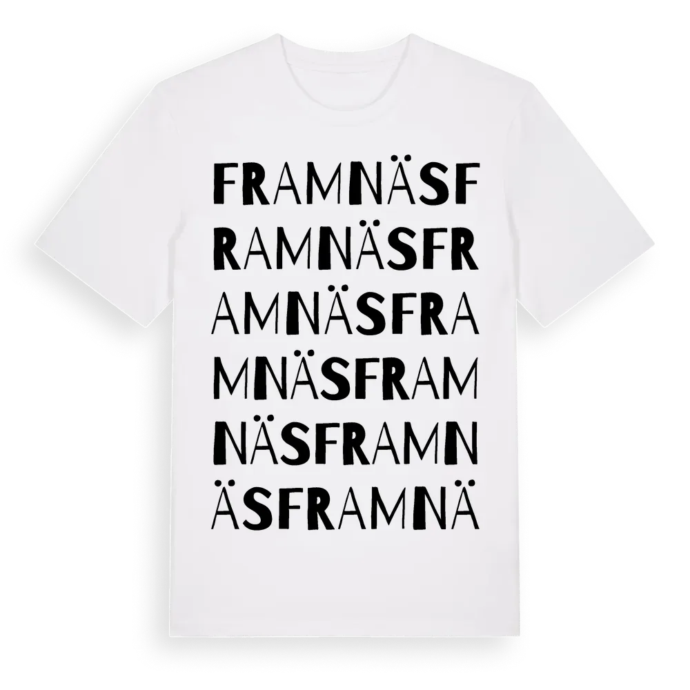 Framnäs ordlek t-shirt är inspirerad av stadsdelen Framnäs i Västra Götalands län, Sverige. Tröjan är designad för dig som har en speciell koppling till platsen – oavsett om du bor här, har rötterna här eller bara älskar Framnäs.
