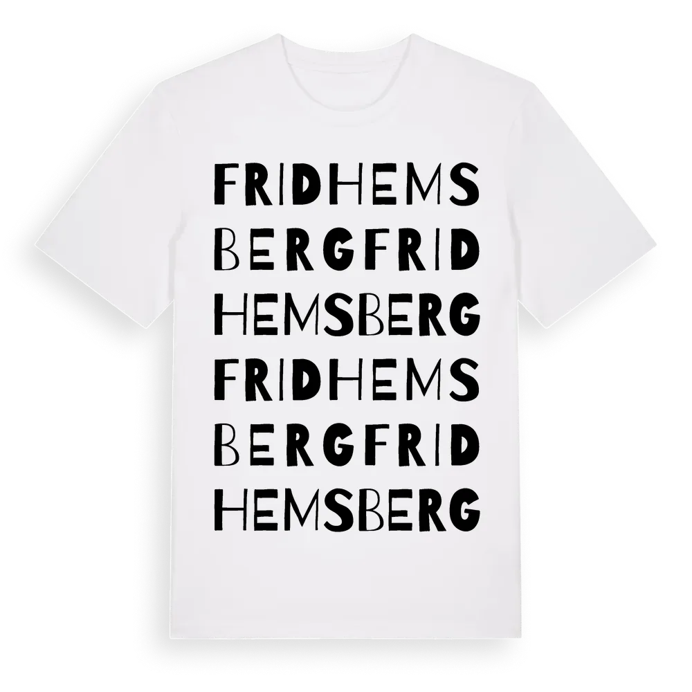 Fridhemsberg ordlek t-shirt är inspirerad av Fridhemsberg i Västra Götalands län, Sverige. Tröjan är designad för dig som har en speciell koppling till platsen – oavsett om du bor här, har rötterna här eller bara älskar Fridhemsberg.
