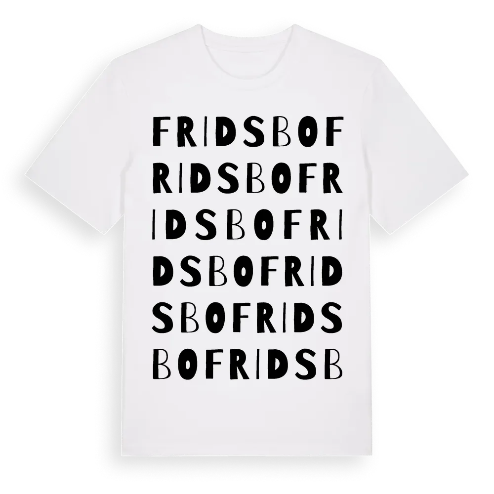 Fridsbo ordlek t-shirt är inspirerad av Fridsbo i Västra Götalands län, Sverige. Tröjan är designad för dig som har en speciell koppling till platsen – oavsett om du bor här, har rötterna här eller bara älskar Fridsbo.