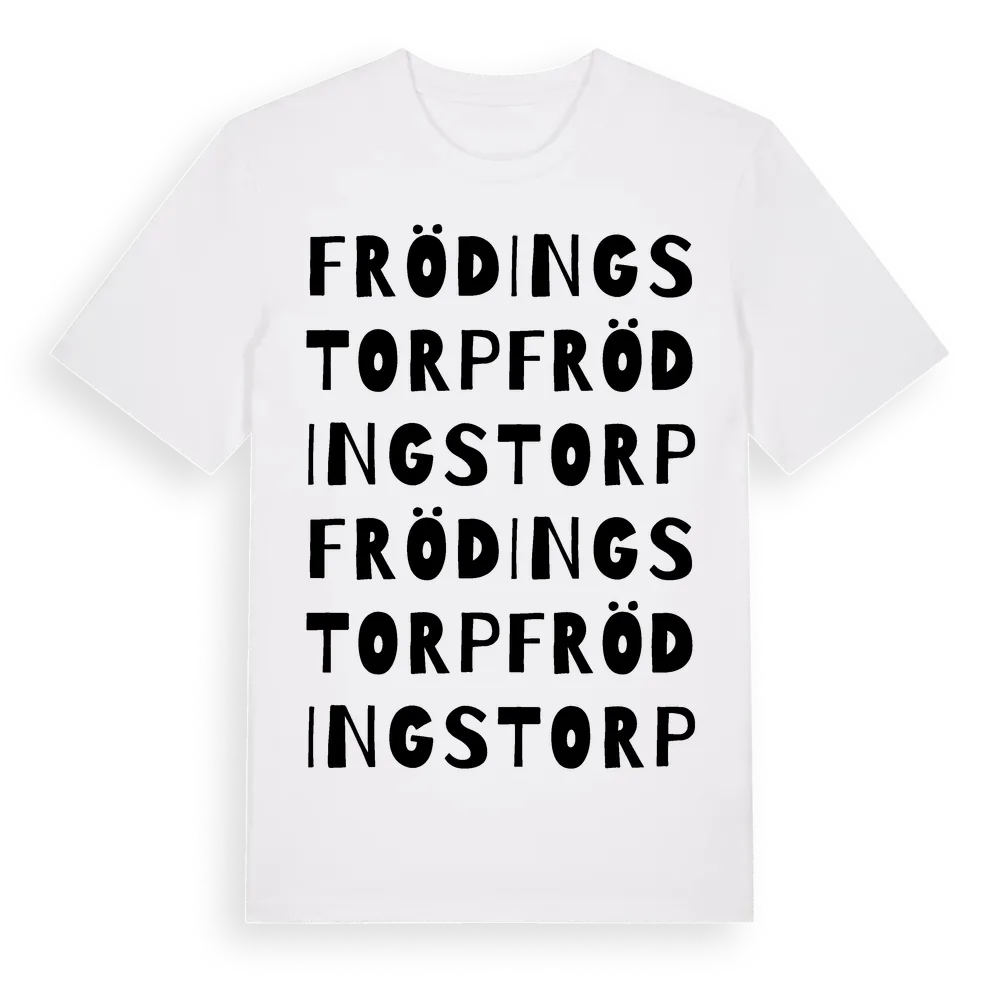 En ordlek byggd på Frödingstorps namn. Subtilt och klurig – ett motiv som bara de som verkligen känner platsen fullt ut förstår. Premium bomull, unisex – från Frödingstorp i Västra Götalands län.