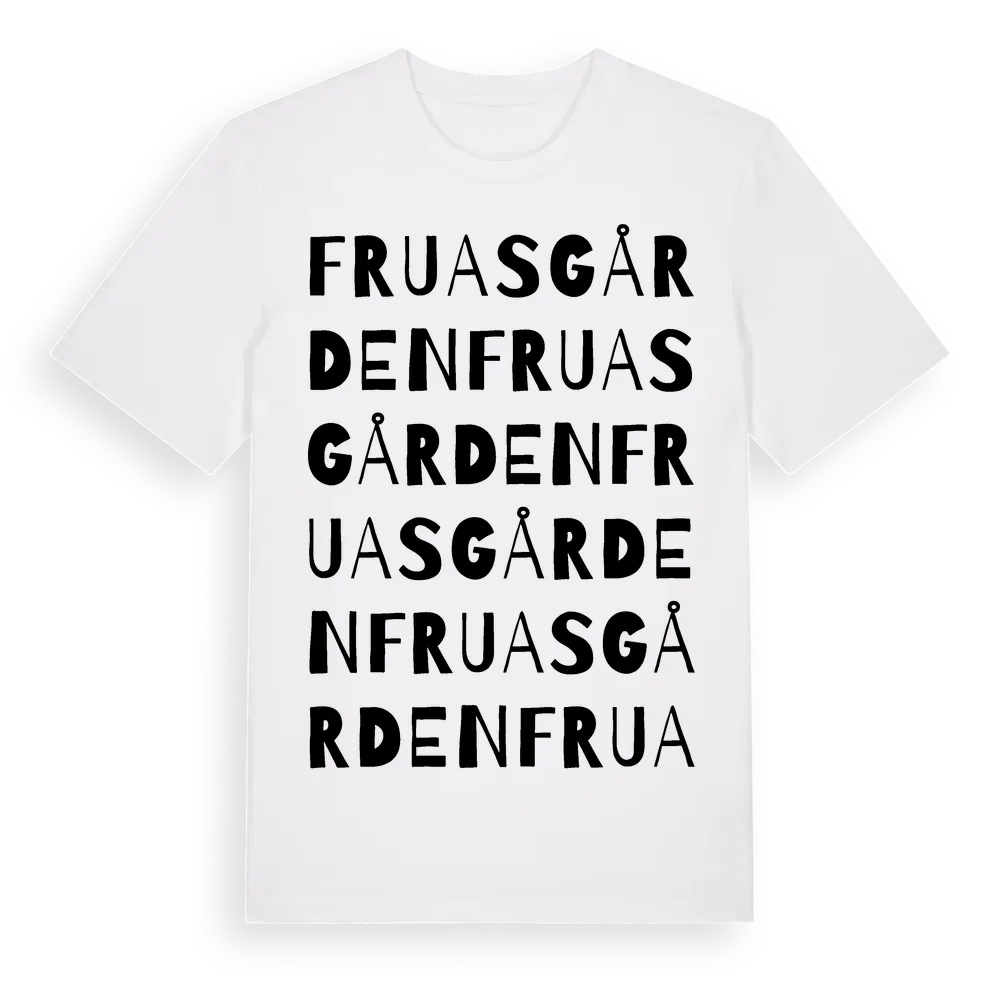 Fruasgården ordlek t-shirt är inspirerad av Fruasgården i Västra Götalands län, Sverige. Tröjan är designad för dig som har en speciell koppling till platsen – oavsett om du bor här, har rötterna här eller bara älskar Fruasgården.