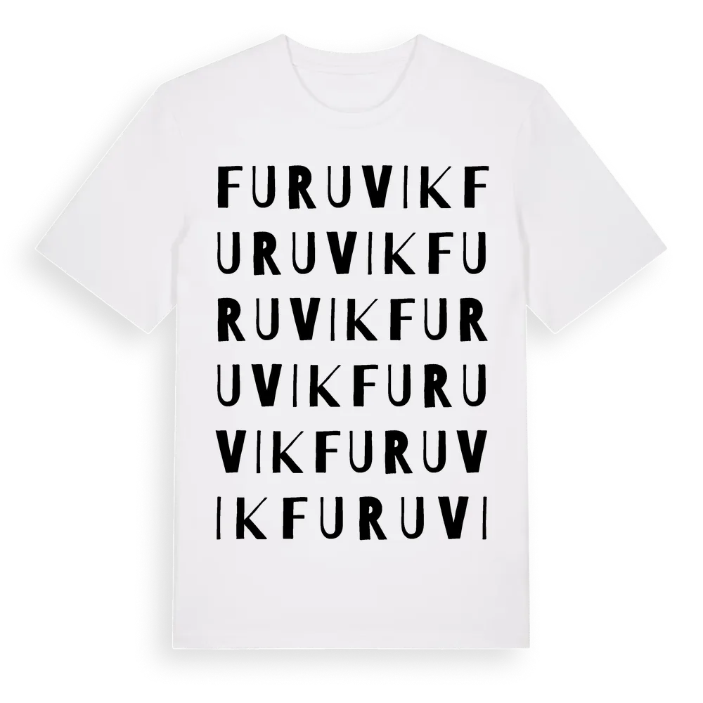 Furuvik ordlek t-shirt är inspirerad av Furuvik i Västra Götalands län, Sverige. Tröjan är designad för dig som har en speciell koppling till platsen – oavsett om du bor här, har rötterna här eller bara älskar Furuvik.