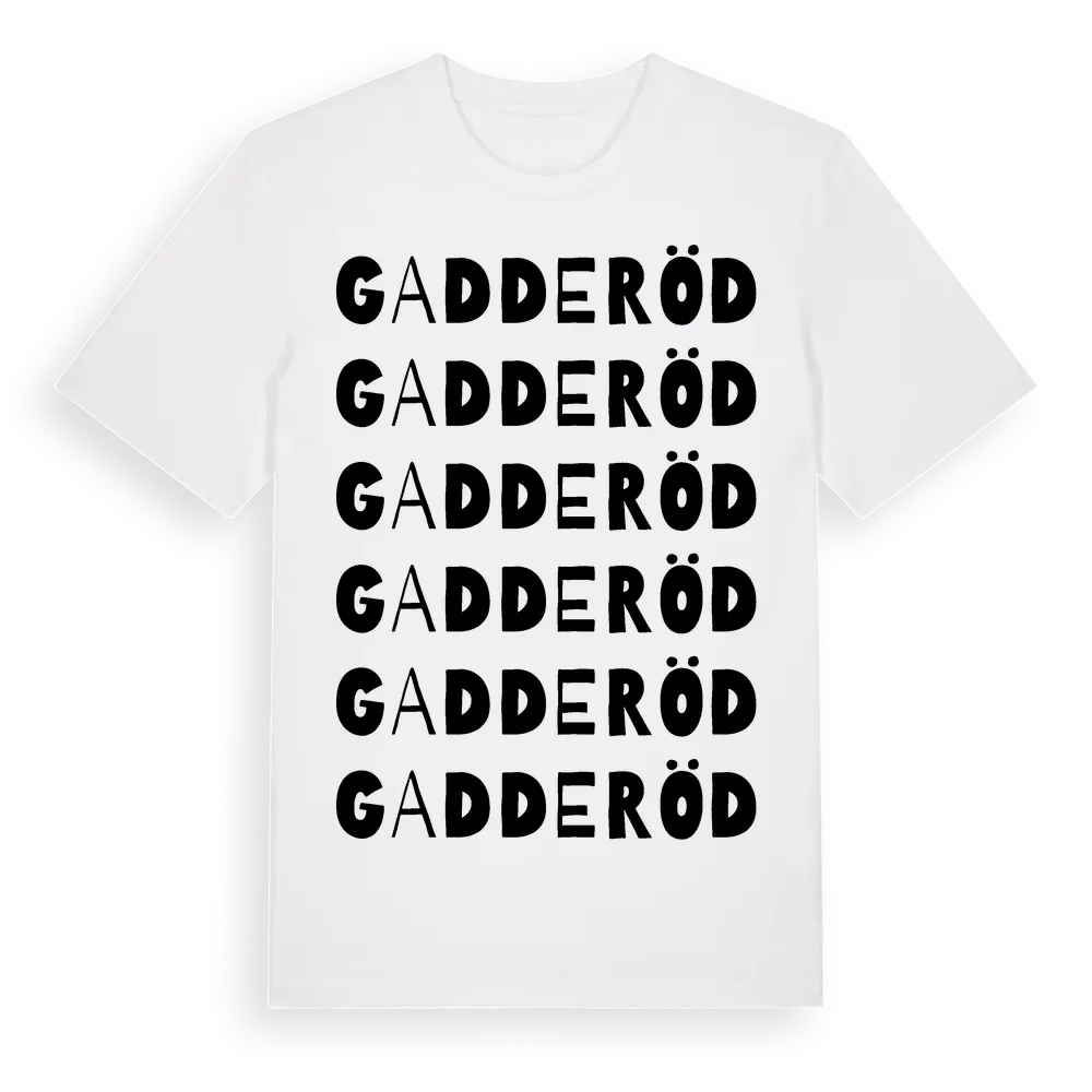 Gadderöd ordlek t-shirt är inspirerad av Gadderöd i Västra Götalands län, Sverige. Tröjan är designad för dig som har en speciell koppling till platsen – oavsett om du bor här, har rötterna här eller bara älskar Gadderöd.