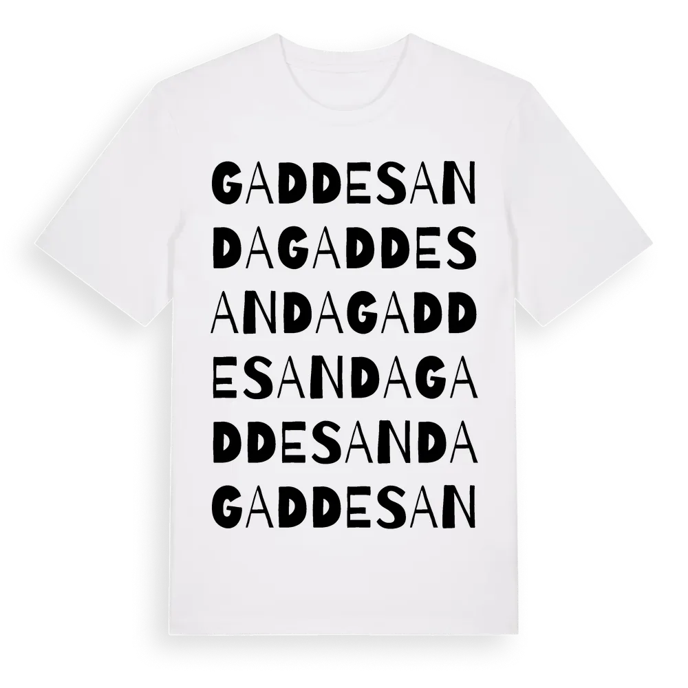 Gaddesanda ordlek t-shirt är inspirerad av byn Gaddesanda i Västra Götalands län, Sverige. Tröjan är designad för dig som har en speciell koppling till platsen – oavsett om du bor här, har rötterna här eller bara älskar Gaddesanda.