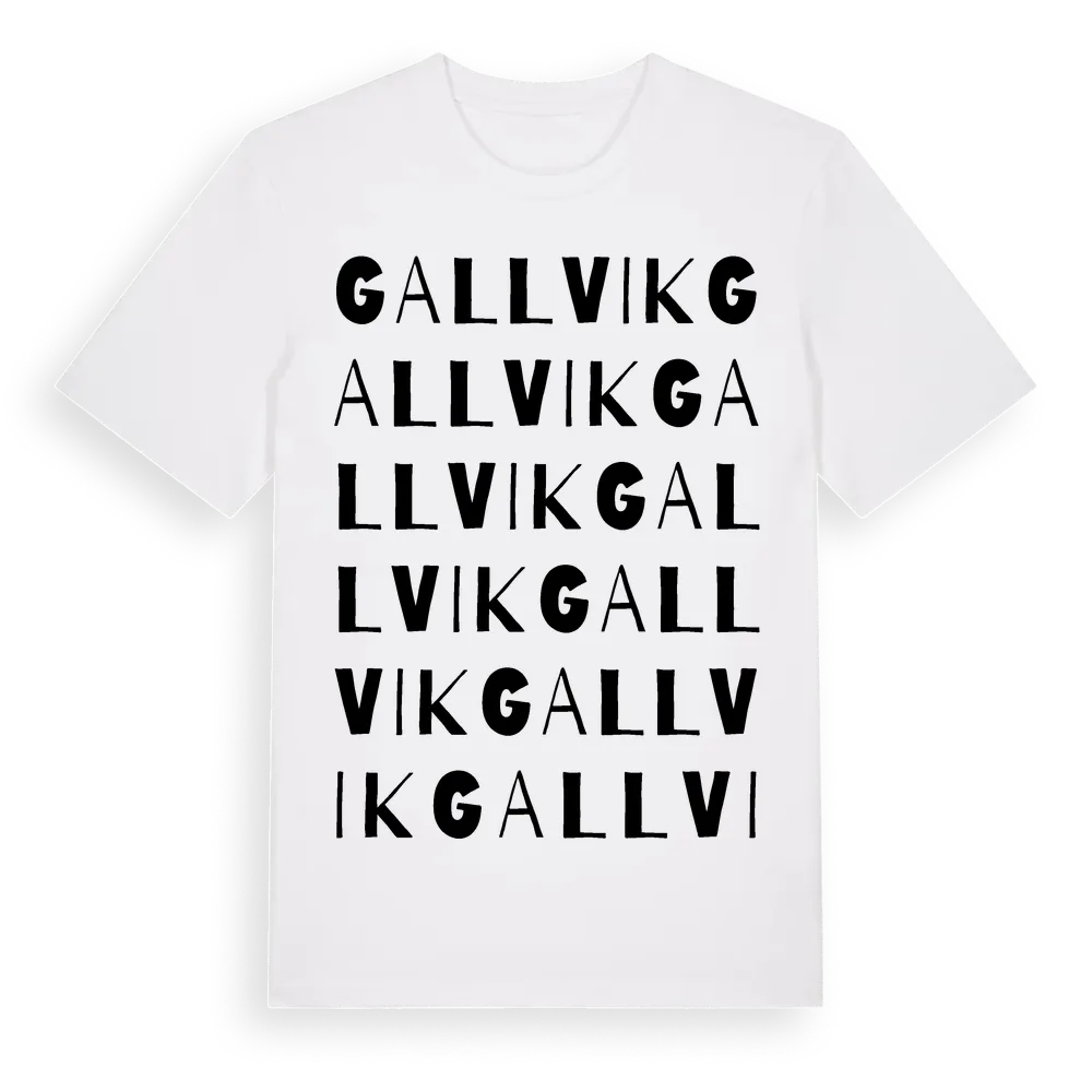 Gallvik ordlek t-shirt är inspirerad av byn Gallvik i Västra Götalands län, Sverige. Tröjan är designad för dig som har en speciell koppling till platsen – oavsett om du bor här, har rötterna här eller bara älskar Gallvik.