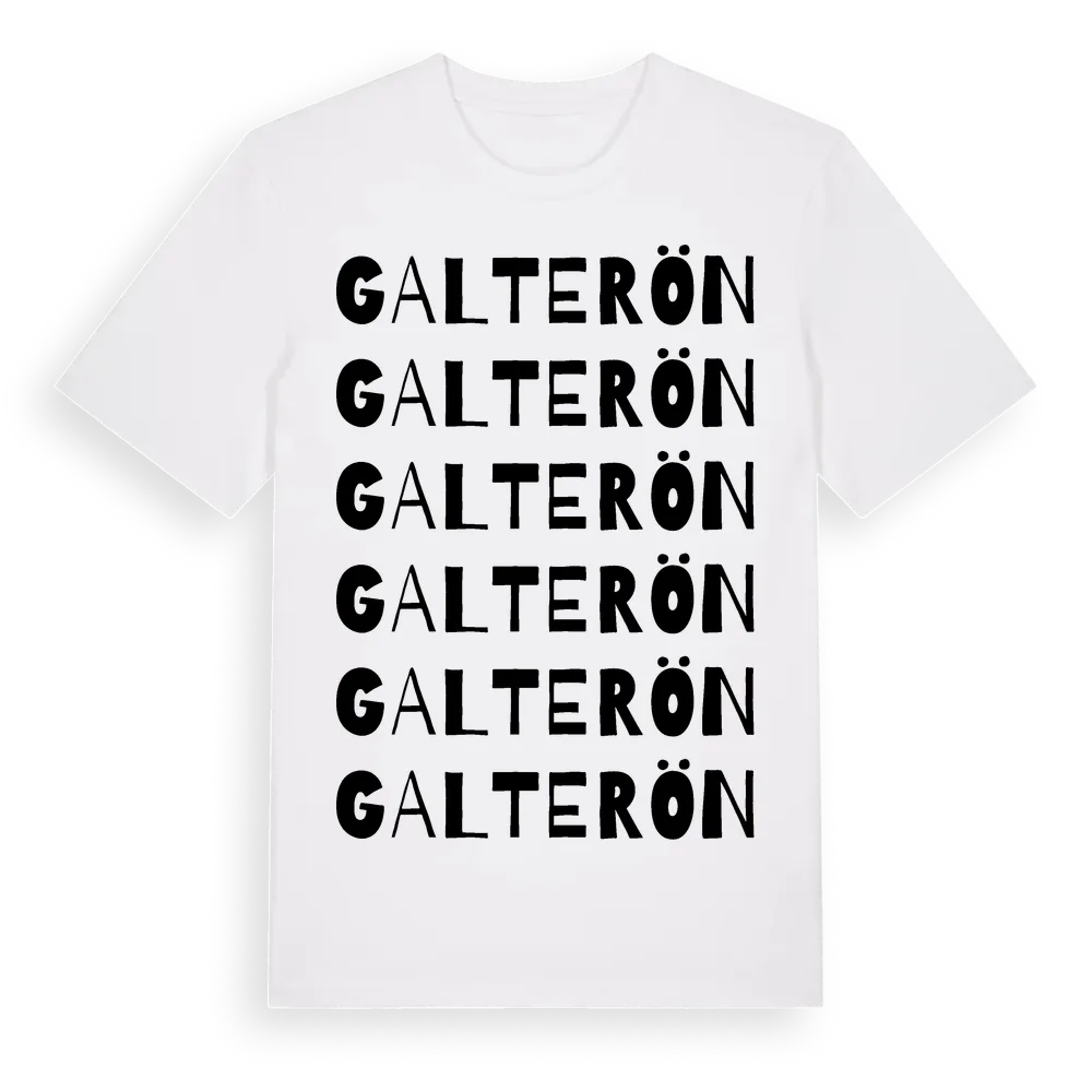 En ordlek byggd på Galteröns namn. Subtilt och klurig – ett motiv som bara de som verkligen känner platsen fullt ut förstår. Premium bomull, unisex – från Galterön i Västra Götalands län.