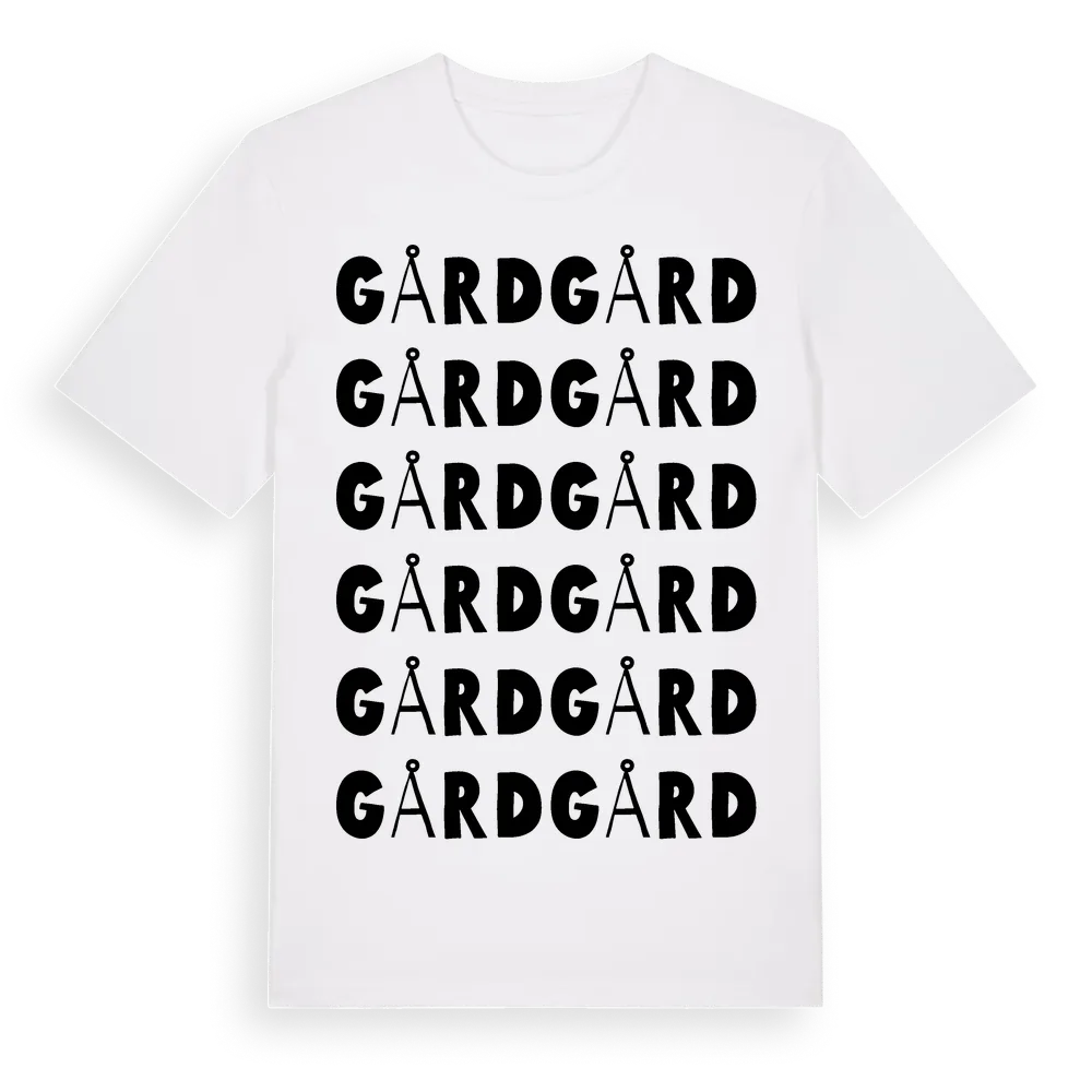 Gård ordlek t-shirt är inspirerad av Gård i Västra Götalands län, Sverige. Tröjan är designad för dig som har en speciell koppling till platsen – oavsett om du bor här, har rötterna här eller bara älskar Gård.