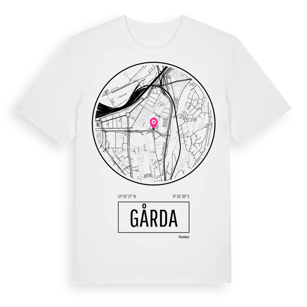 Ett rent, runt tryck med Gårdas namn. Minimalistiskt och stilrent – perfekt för den som känner platsen utan att skrika det. Premium bomull, unisex – från stadsdelen Gårda i Västra Götalands län.