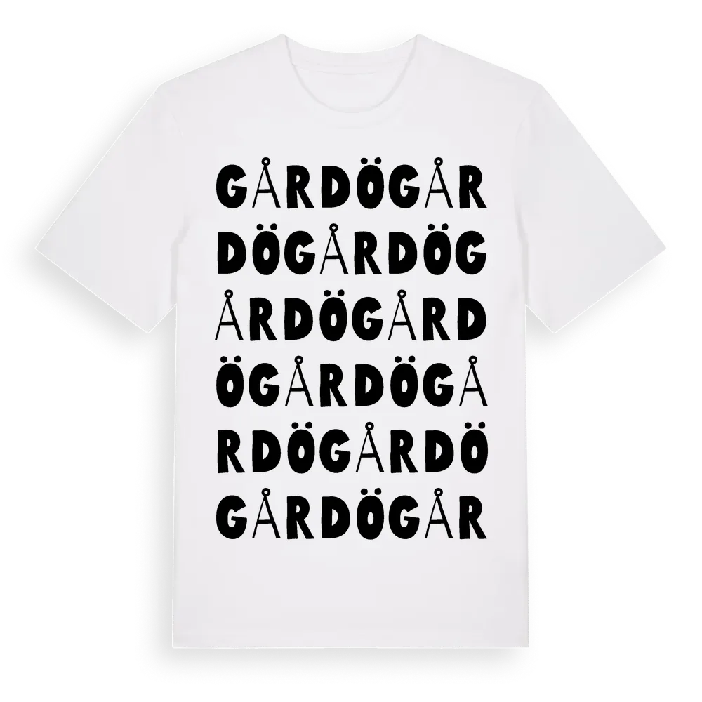 Gårdö ordlek t-shirt är inspirerad av byn Gårdö i Västra Götalands län, Sverige. Tröjan är designad för dig som har en speciell koppling till platsen – oavsett om du bor här, har rötterna här eller bara älskar Gårdö.