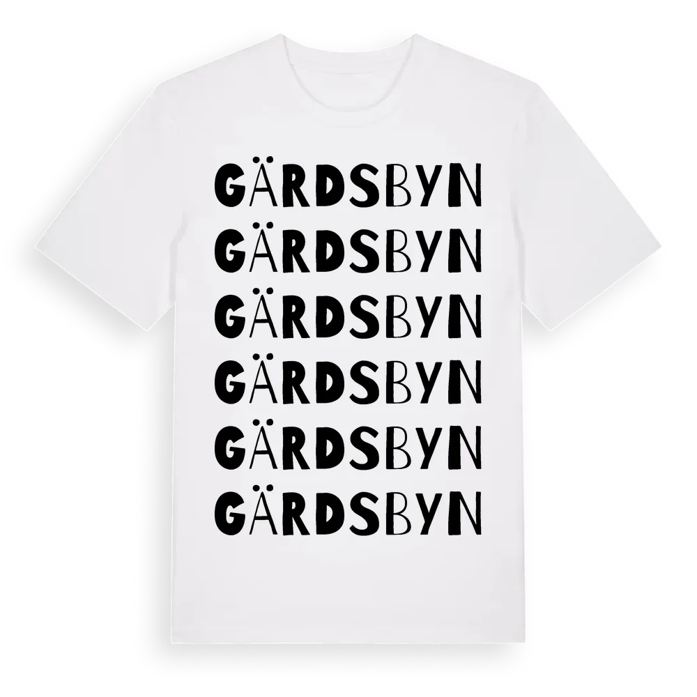 Gärdsbyn ordlek t-shirt är inspirerad av byn Gärdsbyn i Västra Götalands län, Sverige. Tröjan är designad för dig som har en speciell koppling till platsen – oavsett om du bor här, har rötterna här eller bara älskar Gärdsbyn.
