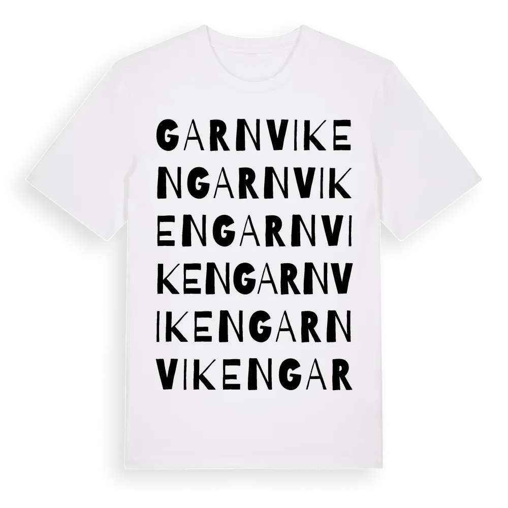 Garnviken ordlek t-shirt är inspirerad av byn Garnviken i Västra Götalands län, Sverige. Tröjan är designad för dig som har en speciell koppling till platsen – oavsett om du bor här, har rötterna här eller bara älskar Garnviken.