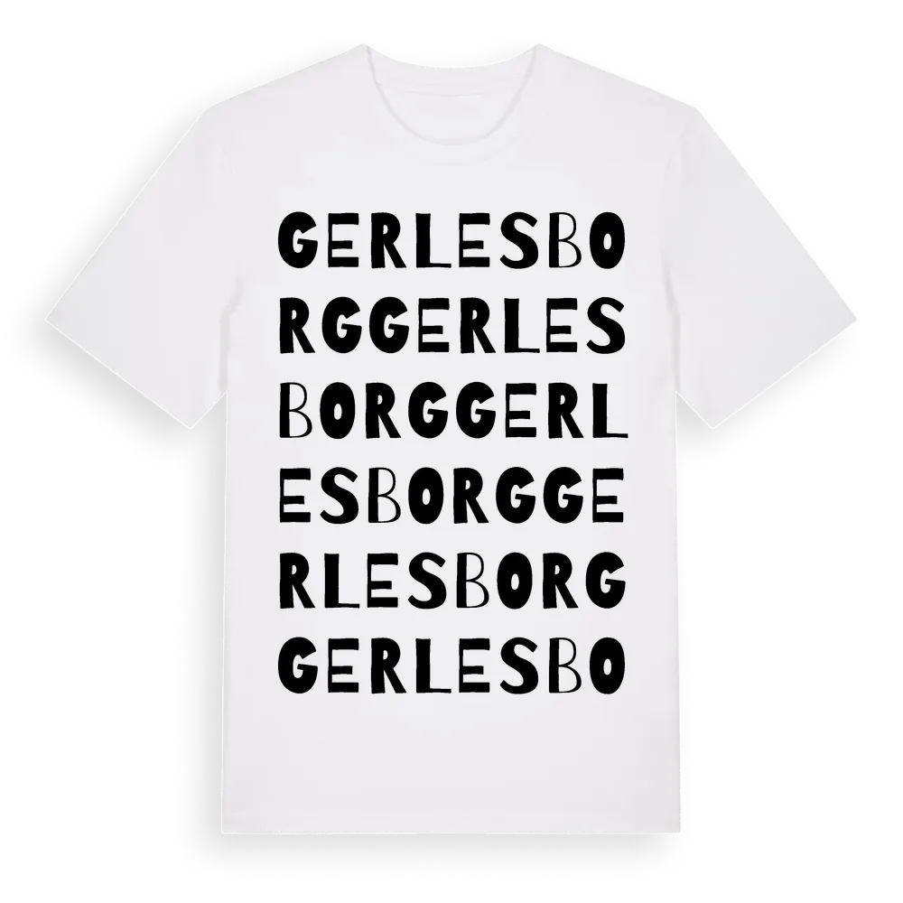 Gerlesborg ordlek t-shirt är inspirerad av byn Gerlesborg i Västra Götalands län, Sverige. Tröjan är designad för dig som har en speciell koppling till platsen – oavsett om du bor här, har rötterna här eller bara älskar Gerlesborg.