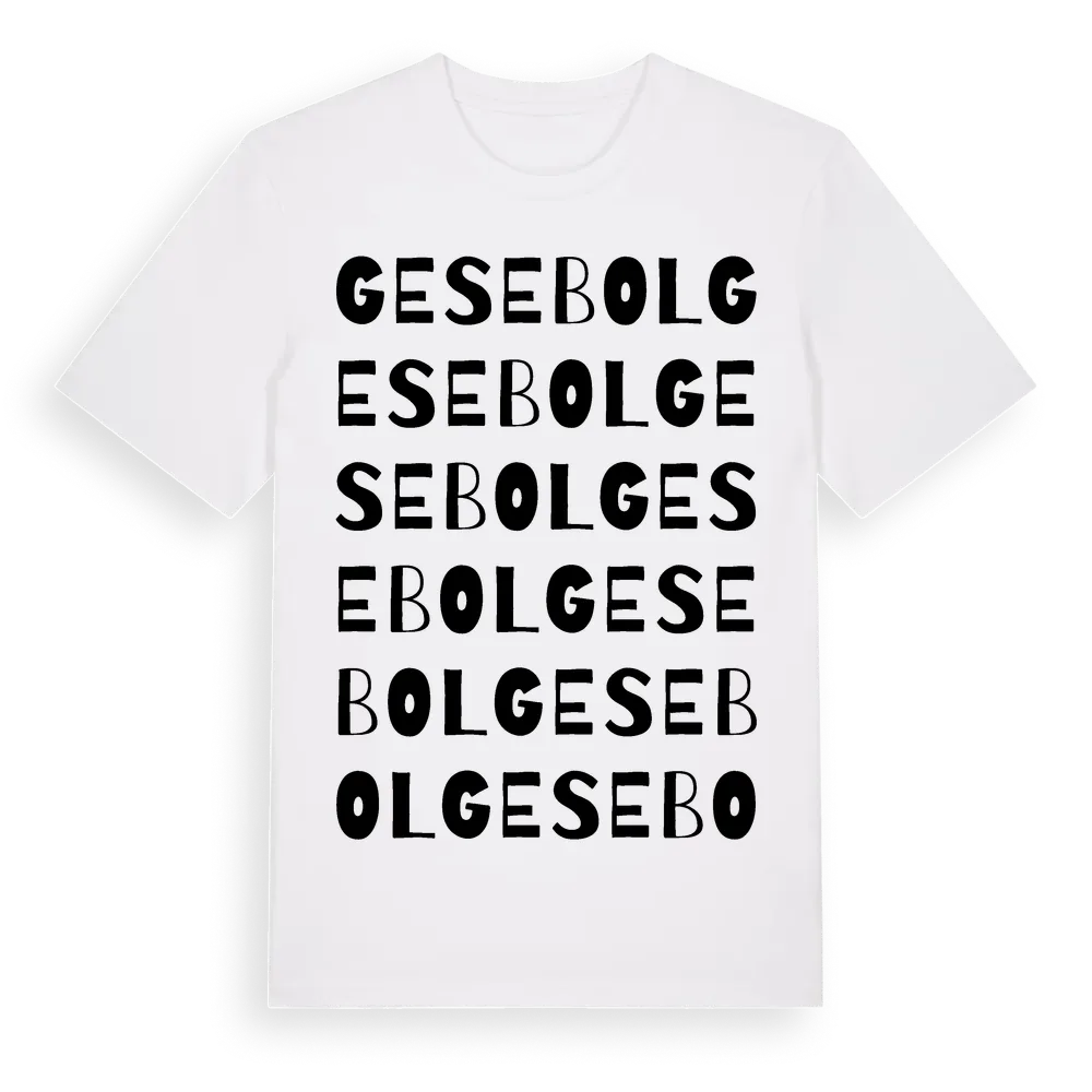 Gesebol ordlek t-shirt är inspirerad av byn Gesebol i Västra Götalands län, Sverige. Tröjan är designad för dig som har en speciell koppling till platsen – oavsett om du bor här, har rötterna här eller bara älskar Gesebol.