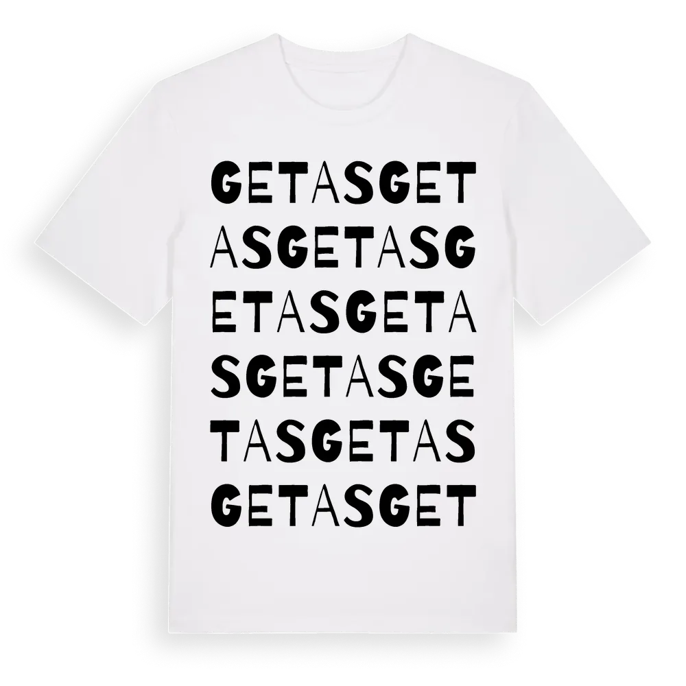 En ordlek byggd på Getass namn. Subtilt och klurig – ett motiv som bara de som verkligen känner platsen fullt ut förstår. Premium bomull, unisex – från stadsdelen Getas i Västra Götalands län.