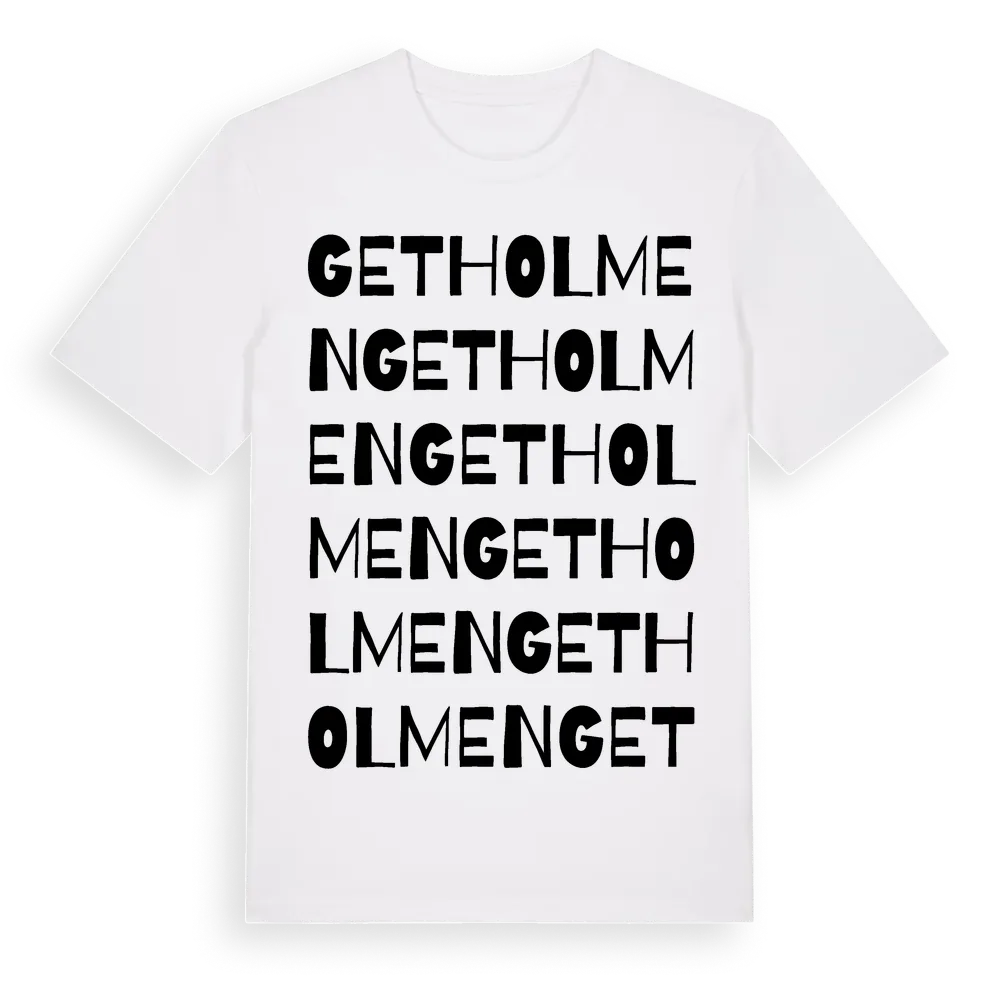 En ordlek byggd på Getholmens namn. Subtilt och klurig – ett motiv som bara de som verkligen känner platsen fullt ut förstår. Premium bomull, unisex – från Getholmen i Västra Götalands län.