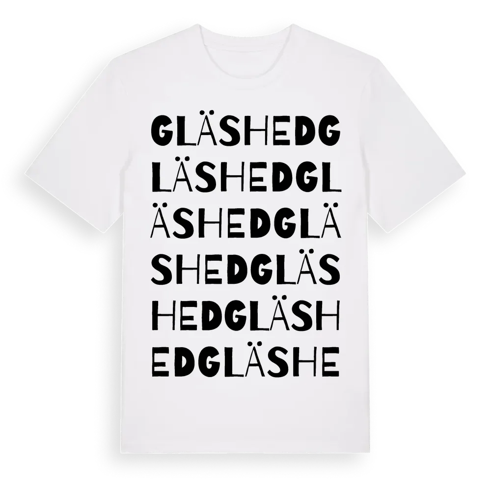 Gläshed ordlek t-shirt är inspirerad av byn Gläshed i Västra Götalands län, Sverige. Tröjan är designad för dig som har en speciell koppling till platsen – oavsett om du bor här, har rötterna här eller bara älskar Gläshed.