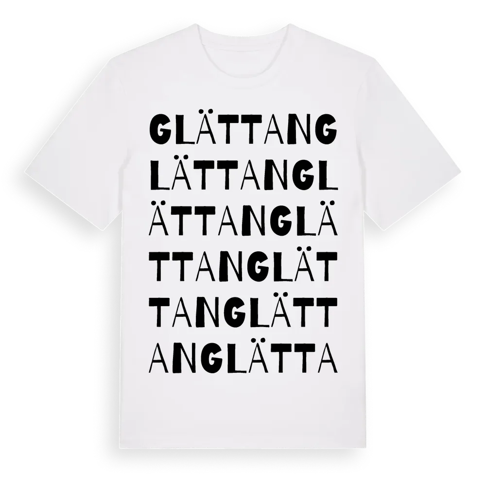 Glättan ordlek t-shirt är inspirerad av Glättan i Västra Götalands län, Sverige. Tröjan är designad för dig som har en speciell koppling till platsen – oavsett om du bor här, har rötterna här eller bara älskar Glättan.
