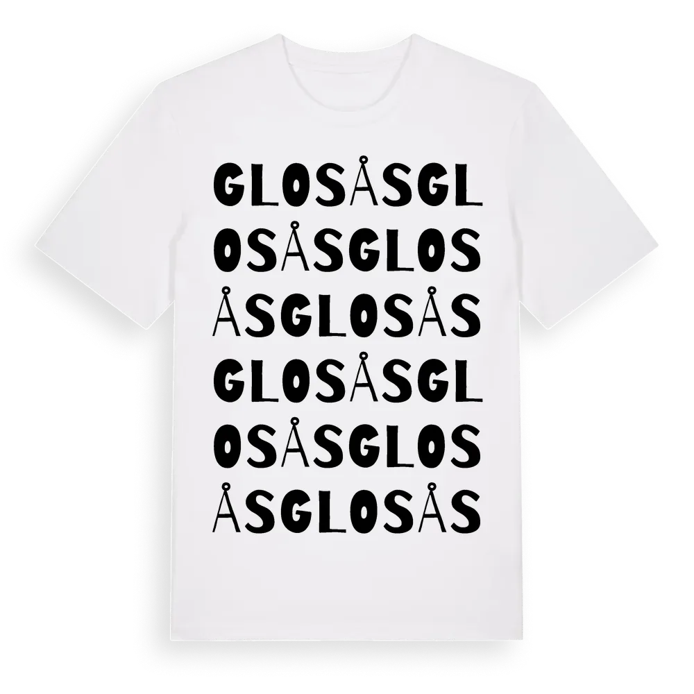 Glosås ordlek t-shirt är inspirerad av byn Glosås i Västra Götalands län, Sverige. Tröjan är designad för dig som har en speciell koppling till platsen – oavsett om du bor här, har rötterna här eller bara älskar Glosås.