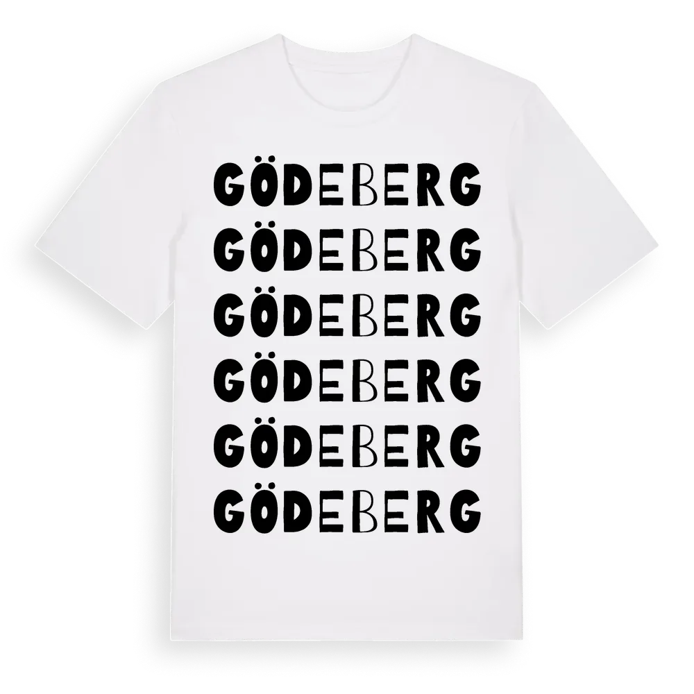 Gödeberg ordlek t-shirt är inspirerad av byn Gödeberg i Västra Götalands län, Sverige. Tröjan är designad för dig som har en speciell koppling till platsen – oavsett om du bor här, har rötterna här eller bara älskar Gödeberg.